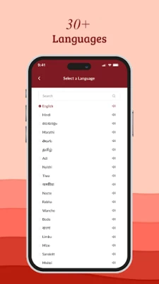 English, Hindi, Assamese, Bengali, Nepali, Malayalam, Tamil, Telugu, Kannada, Konkani, Latin, Spanish (Española), French (Française), Italian, Arabic, Chinese, Korean, Japanese, Czech, Punjabi, Tetum, Malagasy (Malagache)