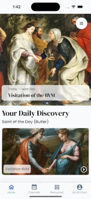 - Search across novenas, saints, Rosary, Divine Office, Bible, and feasts